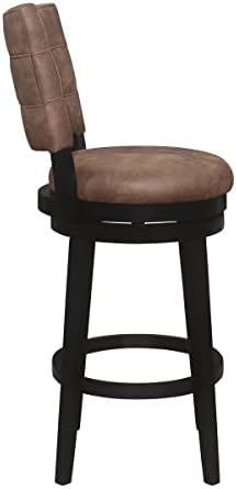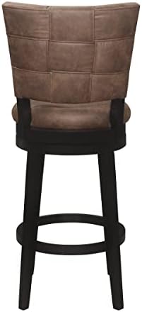 With a classic yet bold silhouette, this contemporary bar height swivel stool is a stunning addition to your kitchen or bar area. Classy faux leather upholstery in chestnut brown covers plush padding in the seat and unique basketweave back while the 360 degree swivel allows easy movement with ultimate comfort. A rich black finish brushed over solid rubberwood frame elevates this swivel stool to new levels of style and class. Together, the neutral colors and simple-but-stylish silhouette make this stool a perfect addition to any home. Assembly required.