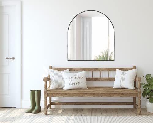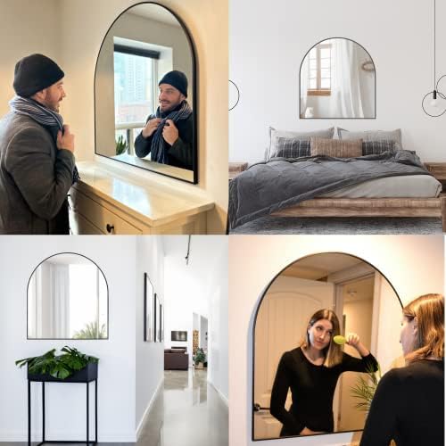 Arched Mirror Decor for Wall – Large Arch Mirror 33″ x 31″ Inches – Wall Mount or Lean – Perfect for Entryway, Mantle, Bedroom – Modern Bathroom Mirror (Black Frame)