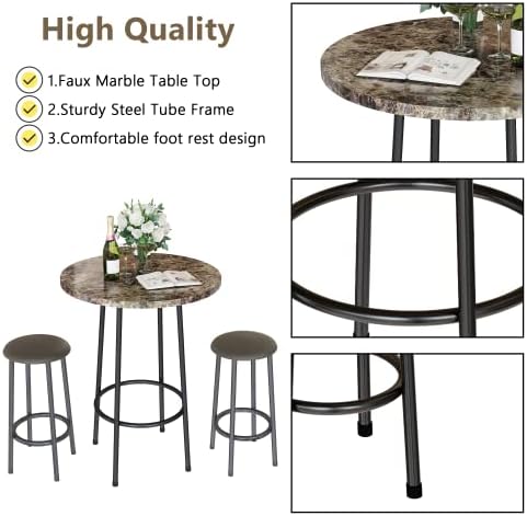 One Other Bright Spot A great look for this bar height table is indispensable. This faux marble table and 2 PU leather stools with a solid steel structure will blend perfectly into your living room and kitchen, bringing simplicity and elegance. This counter height tabke is of excellent workmanship with smooth surface and edge, making it scratch free and easy to clean – your home life good partner