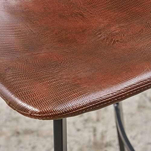 Perch yourself at your home bar or kitchen island and enjoy the sun filtering through your windows as you savor a delectable breakfast. Our Barstool set is a stunning addition to any home with its curved seating and sleek matte base. Featuring a faux snakeskin design with intricate stitching, these Barstools will instantly upgrade your decor with a touch of modern. Not only are they the perfect bar height, but they also feature a stylish, beautifully curved foot rails that provide an extra boost comfort while you wine and dine.