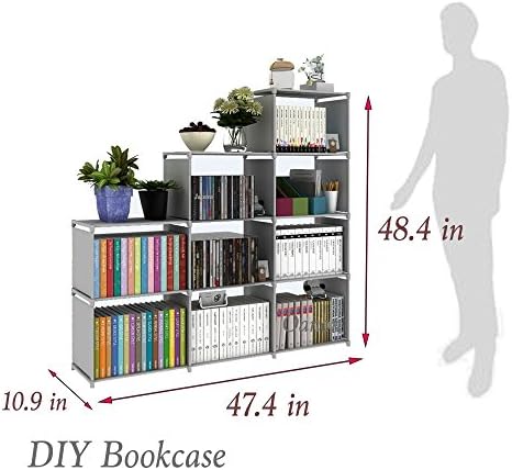 DIY Adjustable Bookcase, Bookshelf with 9 Book Shelves, Home Furniture Storage