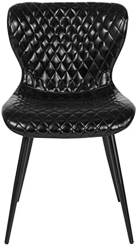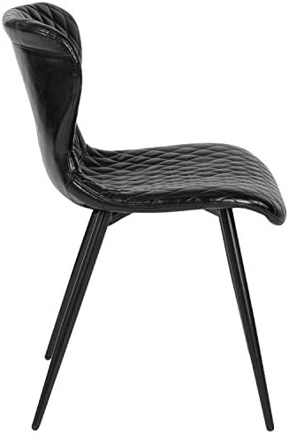 Whether you’re adding seating to your waiting room or your dining room you want it to be elegant and attractive. This designer chair, featuring durable black vinyl upholstery, has a unique diamond quilted pattern seat and back that is very appealing. The stylishly curved back paired with the waterfall front seat edge that removes pressure from the lower legs will ensure your guests are comfortable. The sturdy powder coated metal legs provide an artistic appeal, and also include plastic glides to help move the chair easily while also protecting flooring. This stylish chair can be used in the kitchen, or in the office as a side chair.