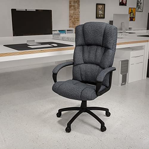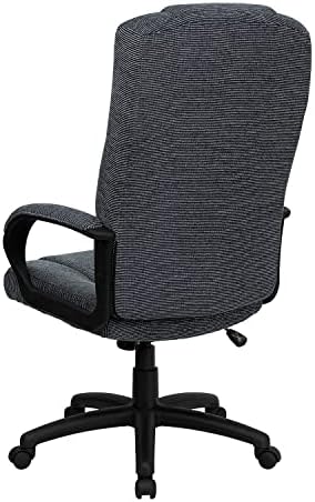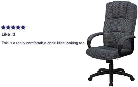 Get back to basics with this black, fabric upholstered executive office chair. High back office chairs extend to the upper back for greater support and relieve tension in the lower back, preventing long term strain. The contoured seat dissipates pressure points for greater comfort. The tilt lock mechanism rocks/tilts the chair and locks in an upright position while the tilt tension adjustment knob adjusts the chair’s backward tilt resistance. Chair easily swivels 360 degrees to get the maximum use of your workspace without strain. The pneumatic adjustment lever will allow you to easily adjust the seat to your desired height. You can rely on this durable chair to get you through your work day or keep you comfortable while browsing the internet.
