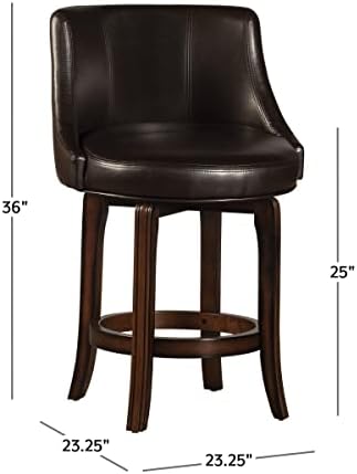 The Hillsdale Furniture Napa Valley Swivel Counter Height Stool is designed for comfort and versatility. Its rich brown palette complements most color schemes. The tub seat design with low English arms, covered in a brown bonded leather upholstery, wraps guests in relaxation while the perfectly placed footrest and 360° swivel functionality add extra comfort. Ideal for use at the kitchen island or at a counter-height dining table. Assembly required.