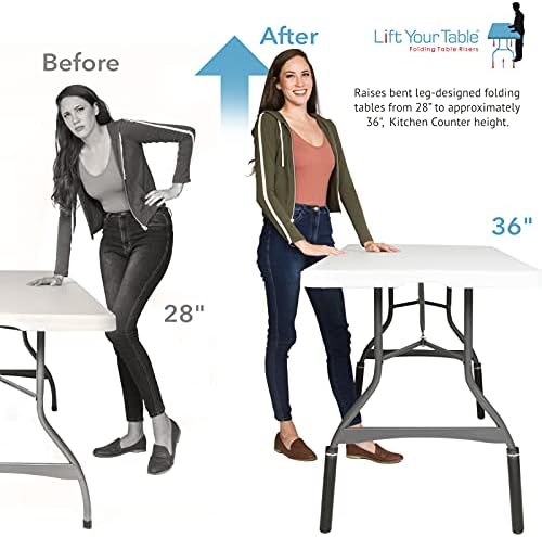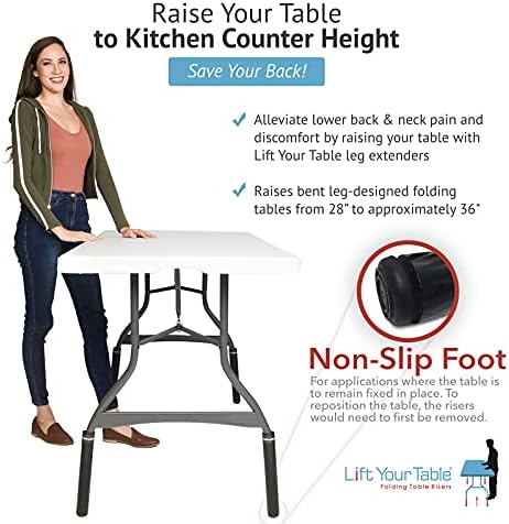 Lift Your Table® Folding Table Risers, Made In The USA, Easy-To-Use Bent Leg Folding Table Extensions, Counter Height (Non-Slip Foot), Raises Folding Tables 8” Inches. Durable, Sturdy. Set of 4, Black
