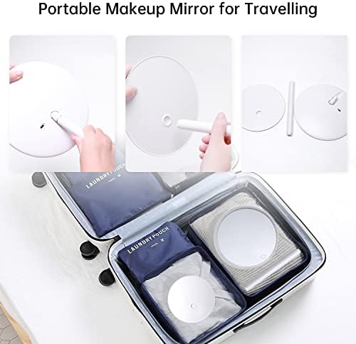Lighted Makeup Mirror Rechargeable – Led Vanity Mirror with Stand – 1x/10x Magnifying Mirror – Touch Control Dimmable Cosmetic Mirror with 3 Lighting Modes for Makeup – White