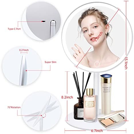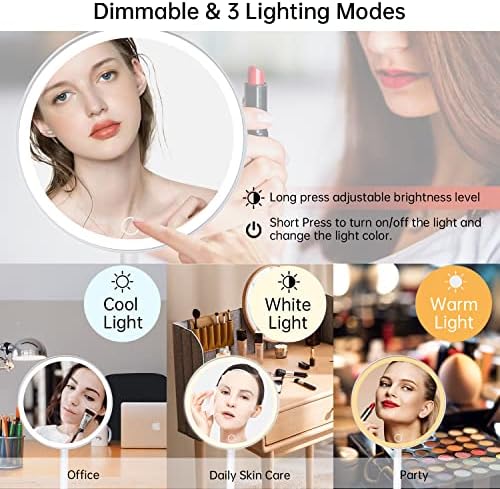 🌈3 COLOR LIGHT & TOUCH CONTROL & DIMMABLE – Proper lighting is key to achieving the perfect look. We can’t always have sunlight in our rooms. Our led makeup mirror can provide 3 lighting modes (white lights, warm lights, and cool lights). Just press the touch button, short press to turn it on/off, and long press for brightness adjustable.
