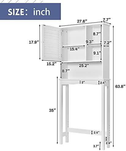 [Classical Design]: With freestanding cabinet design in white, this over-the-toilet cabinet is perfectly complied with your bathroom decoration. White style is simple but not lacks elegance, which is popular in all kinds of renovation.