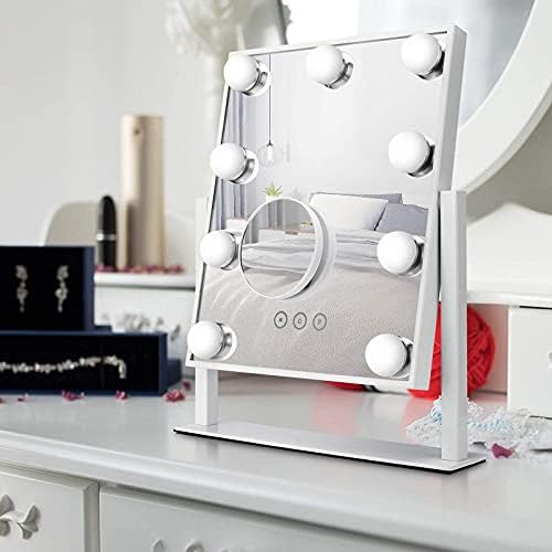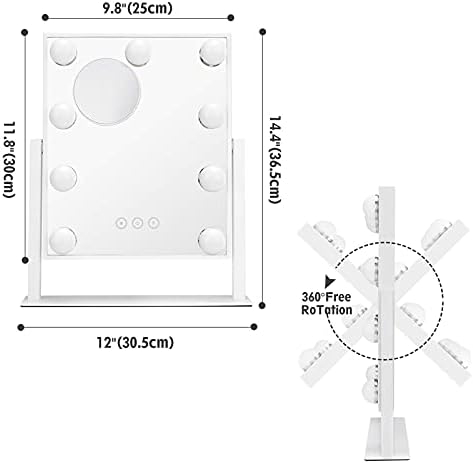 NUSVAN Vanity Mirror with Lights,Makeup Mirror with Lights with 9 Dimmable LED Bulbs, 3 Color Lighting Modes Detachable 10X Magnification Mirror Touch Control,360°Rotation