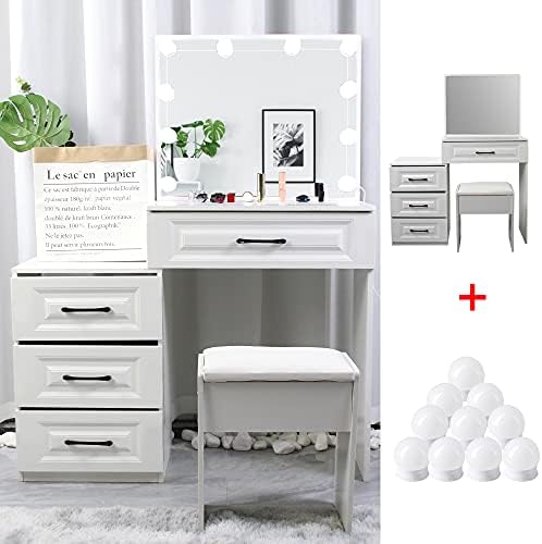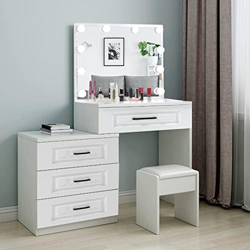 【More Storage Space】The dresser has one large drawer and 3 small drawers, and open storage space for your makeup, jewelry and other beauty items.