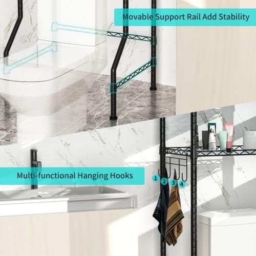 STABLE& DURABLE: Comes with 3 support rails for installing on the bottom of the storage rack to add stability, and the adjustable design make it is compatible with the water faucet position. Heavy duty metal materials make the over-the-toilet storage durable and stylish