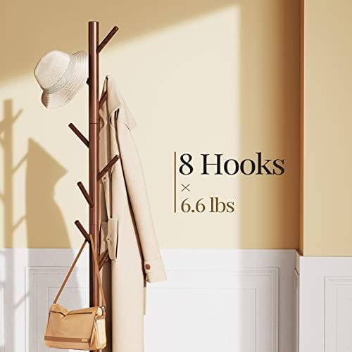 Sufficient Storage Space: The coat rack includes 8 storage hooks to provide plenty of space to hang items including clothing, bags, hats, umbrellas, and more. The wooden coat rack can help to keep your living space tidy and organized.