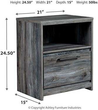 Beachy style and room for bedside essentials go hand in hand with the Baystorm nightstand. Its driftwood and surfer-inspired smokey finish creates a rustic look that’s perfect for setting the scene of an island getaway. You’ll find the drawer and cubby to be spacious. Clean lines and modern handles provide an authentic look to be admired for years to come.
