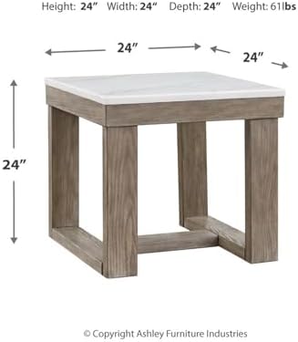 This square end table is simple in design but big on style. Finished with a trend-right grayish brown wood tone, its bold, blocky profile and natural marble top are timeless classic choices that work so well with a variety of settings. Adding to its beauty, the marble top’s color variations, fissures, mineral deposits and veining are naturally formed and are not defects.