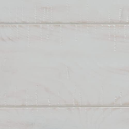INDUSTRIAL MATERIAL MIX: Pewter tone base finish complements the white farmhouse plank style of the wood seat