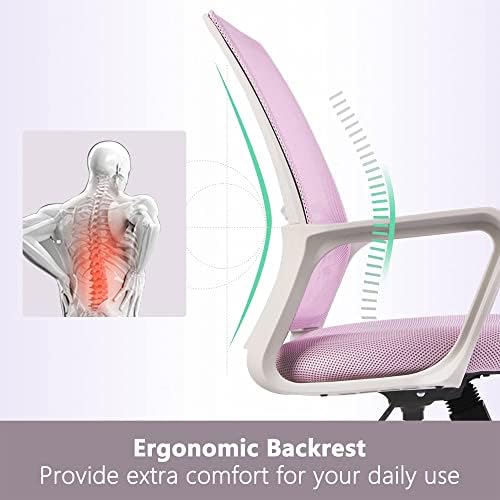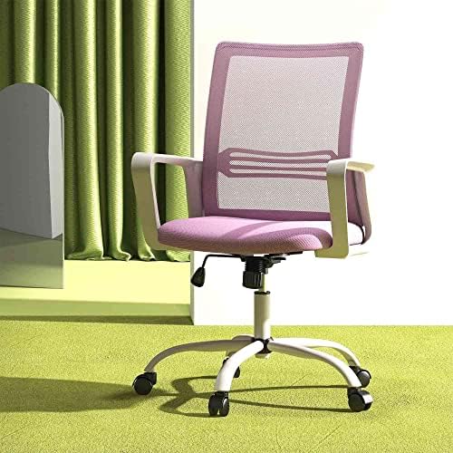 Smugdesk Ergonomic Mid Back Breathable Mesh Swivel Desk Chair with Adjustable Height and Lumbar Support Armrest for Home, Office, and Study, Pink