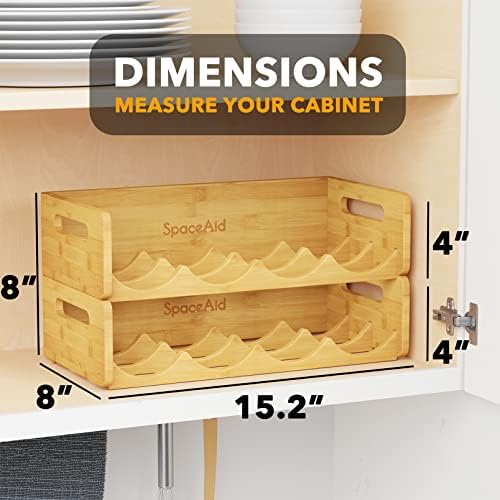 SpaceAid Bamboo Water Bottle Organizer with Labels, Kitchen Pantry Water Bottle Storage Rack for Cabinets, Home Cup and Wine Bottle Holder Shelf Organizers, 2 Pack 4-Slot, Hold 8 Bottles
