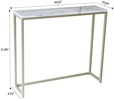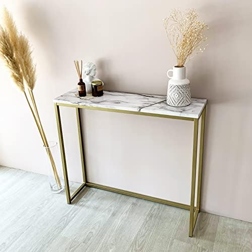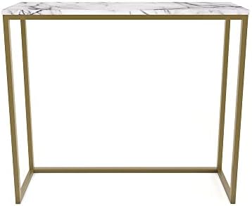 Tilly Lin Modern Accent Faux White Marble Console Table, Foyer Table Gold/Bronze Metal Frame, for Hallway Entryway Living Room, Entrance Hall Furniture, Carrara