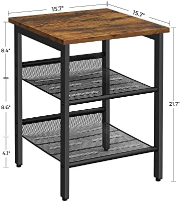 VASAGLE End Table, Nightstand with 2 Adjustable Mesh Shelves, Industrial Side Table for Living Room, Stable Metal Frame, Easy Assembly, Rustic Brown and Black ULET23X
