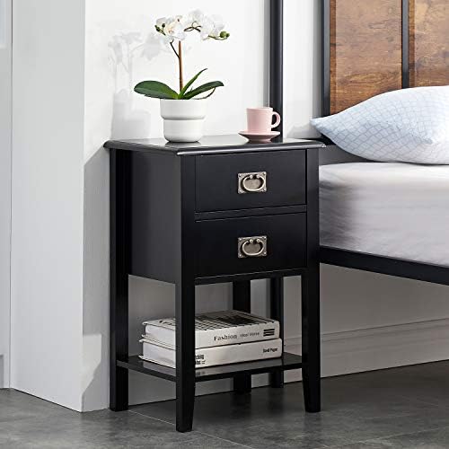 [Ample Storage Space] – This nightstand inside and out is black painted for a complete look. Smooth running drawer provides sufficient storage space, round ring handle for easy pulled out.