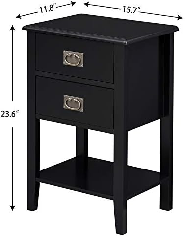 This nightstand is crafted from solid and manufactured wood, it showcases a simple classic design. All black painted are waterproof and feature a complete look. Two drawers and bottom shelf provide just the right amount of space for your nighttime essentials.