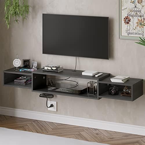 High Quality and Safety Material:It’s made of eco-friendly and waterproof particle board which meets the EPA TSCA Title VI and Carb Certification, and the 4AC-outlet power strip we provided is certified by ETL. The 4.92ft upgraded power cord is very thick and has better current carrying capacity.This wall TV console can hold up to 100 lbs