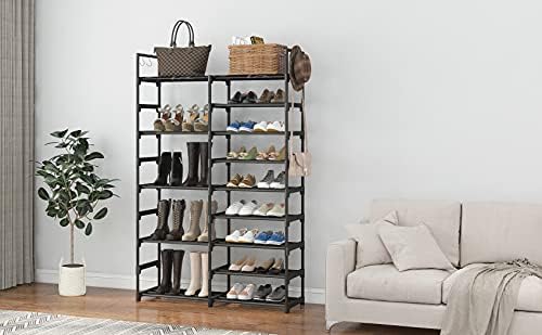 【DURABLE & STURDY STRUCTURE】:9-Tier Shoe Rack is made of powder-coated metal tubes and high quality plastic parts. Stable durable sturdy shoe tower shoe shelf. The diameter of metal tube is 13mm, which enables this shoe rack load much heavier duty and more durable while using. And the powder-coated finish does not rust or corrode with normal use, it is perfect for your everyday organization.