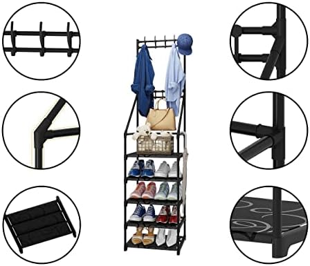 YAHAO 5-Tier Shoe Rack Coat Hat Rack,Freestanding Shoe Rack, Holds 10 Pair Shoes And Boots ,And Hangs Coats & Hats ,For Home Office And Bedroom Entryway(Black)