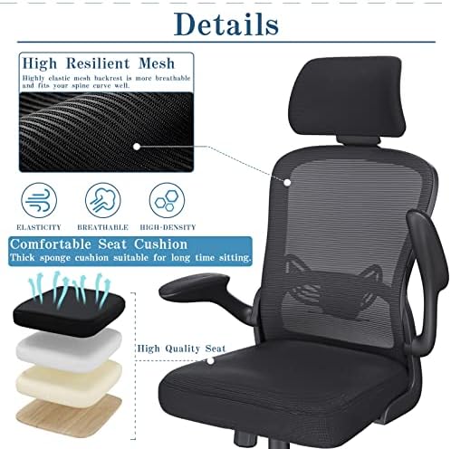 ZXBEER Office Chair Ergonomic Desk Chair Lumbar Support Height Adjustable Computer Chair with Flip-up Armrests, Mesh High Back, and 360° Rocking Function Swivel Task Chair for Home Office- Black
